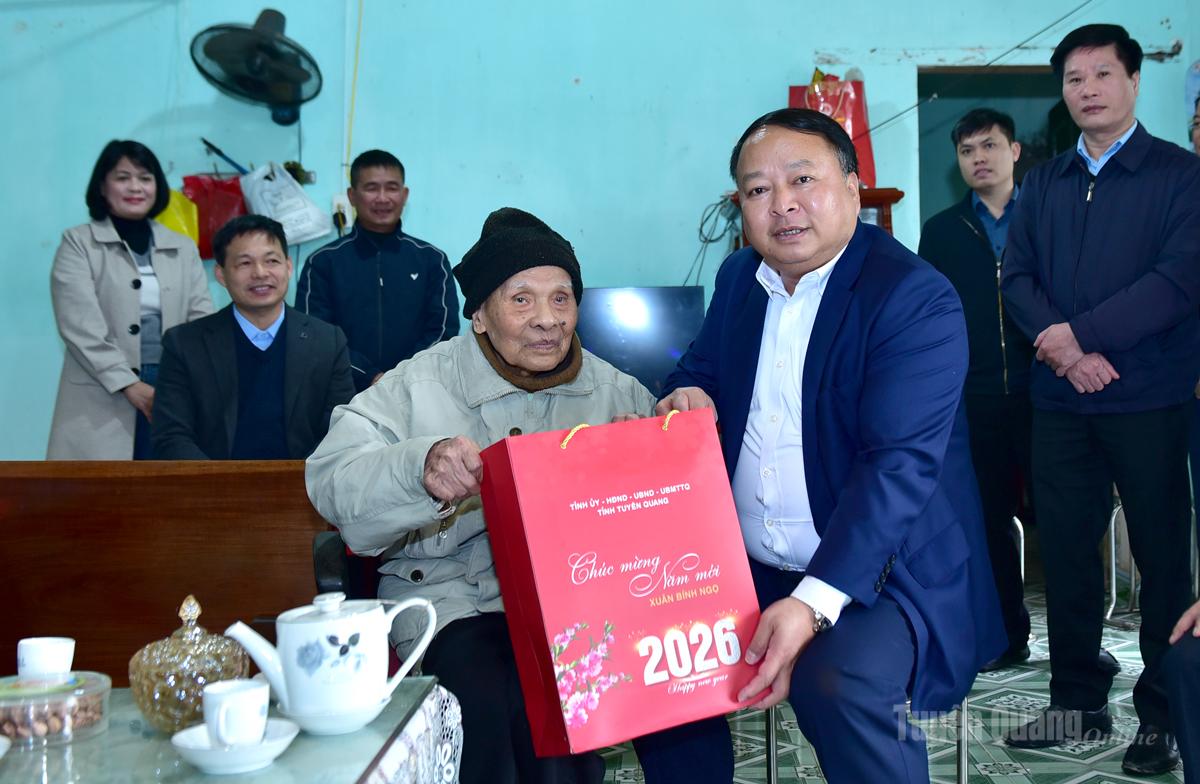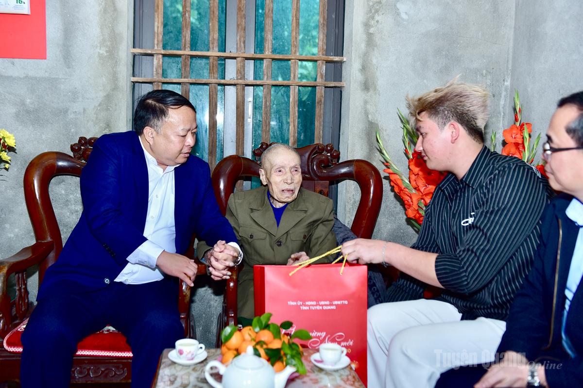 Chủ tịch UBND tỉnh Phan Huy Ngọc đã đến thăm, chúc Tết tặng quà ông Đoàn Đức Chính là thương binh, ở tổ dân phố Phan Thiết 14; bà Vũ Thị Liệu, năm nay 100 tuổi, là mẹ liệt sĩ Phạm Văn Soạn, ở tổ dân phố Trung Môn 12 (cùng phường Minh Xuân); ông Lê Văn Tân, 77 năm tuổi Đảng, bộ đội thời kỳ kháng chiến chống Pháp, ở tổ dân phố Ngòi, phường Mỹ Lâm; ông Dương Phú Quý, cán bộ tiền khởi nghĩa, ở tổ dân phố Thúc Thuỷ, phường An Tường; ông Tạ Đức Xuân, nguyên là Hiệu Trưởng Trường THPT Tân Trào (đảng viên đã nhận huy hiệu 65 tuổi Đảng), ở tổ 4, phường Nông Tiến.